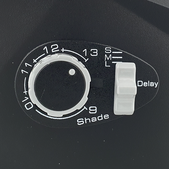 Automatyczny filtr zaciemniający po zajarzeniu łuku samoczynnie zmienia się z jasnego na ciemny, a po zakończeniu spawania ponownie staje się jasny.