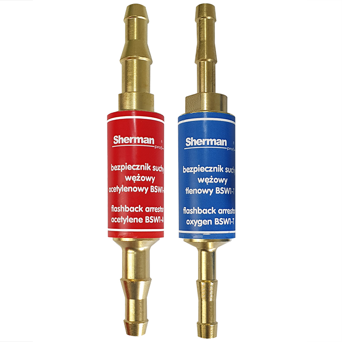 Bezpieczniki suche montowane są na odpowiednich (tlenowych lub acetylenowych) wężach spawalniczych.