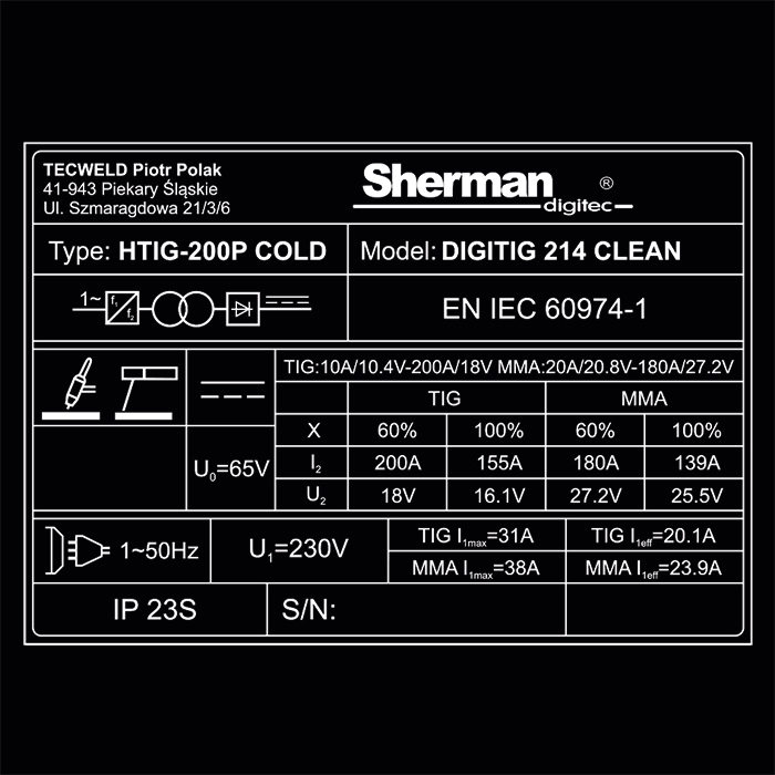 | Max pobór mocy TIG [kVA] | 5,3 |