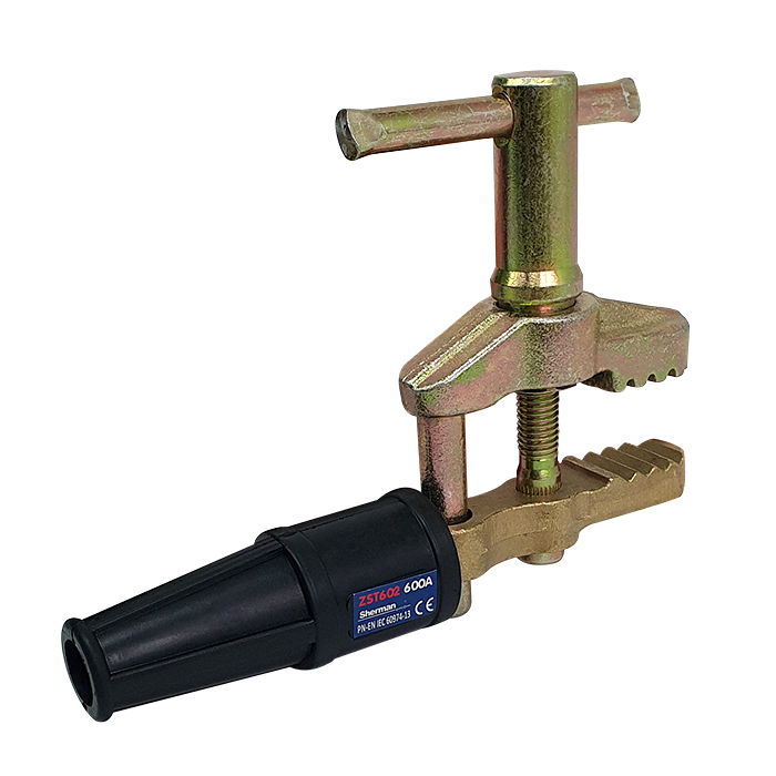 Zaciski śrubowe stosowane są w przewodach masowych urządzeń spawalniczych.