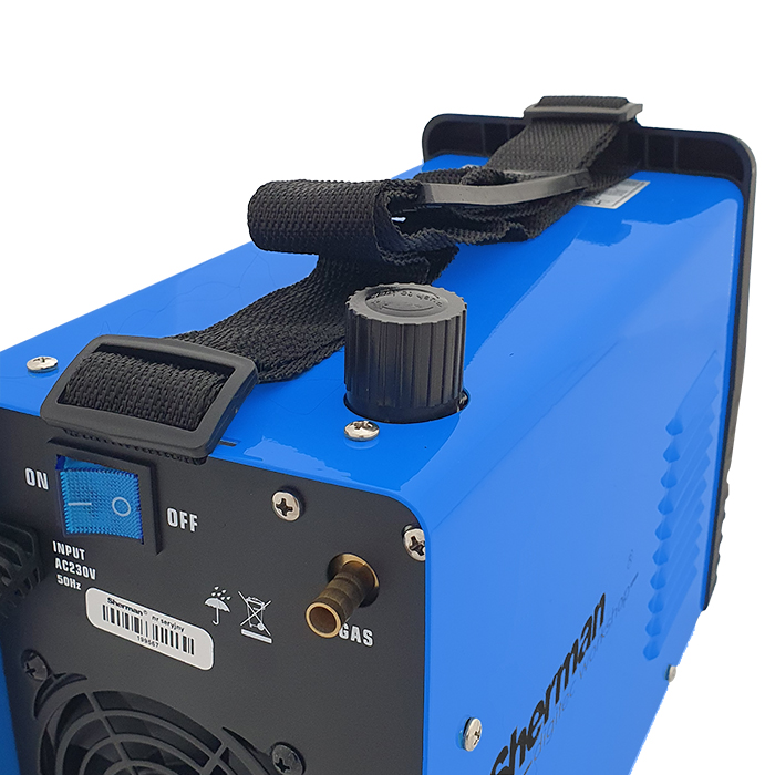 Przecinarka posiada przewód masowy, zintegrowany uchwyt plazmowy 5 m z zajarzaniem dotykowym oraz wbudowany zespół przygotowania powietrza z reduktorem umożliwiający regulację i kontrolę ciśnienia powietrza.