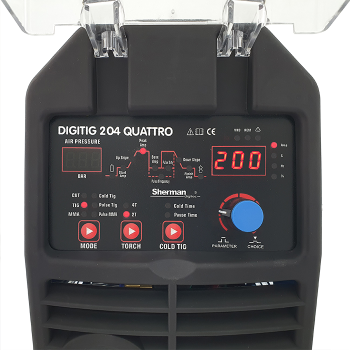 Spawarka DIGITIG 204 QUATTRO służy do spawania ręcznego metodą TIG HF oraz MMA (elektrodą otuloną) stali i metali kolorowych prądem stałym z możliwością wykorzystania pulsacji prądu. Umożliwia także cięcie plazmowe blach i elementów stalowych, aluminiowych i miedzianych. Wyposażone jest w funkcję zimnego spawania umożliwiającą spajanie cienkich elementów, dzięki bardzo niskiej emisji ciepła w strefie łączenia.