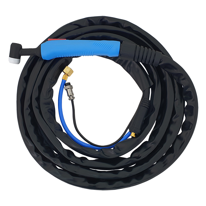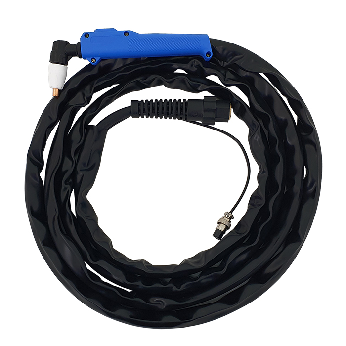 W komplecie znajdują się uchwyt spawalniczy TIG, uchwyt do cięcia plazmowego PT-31, przewód elektrodowy, przewód masowy oraz zewnętrzny zespół przygotowania powietrza do cięcia plazmowego.