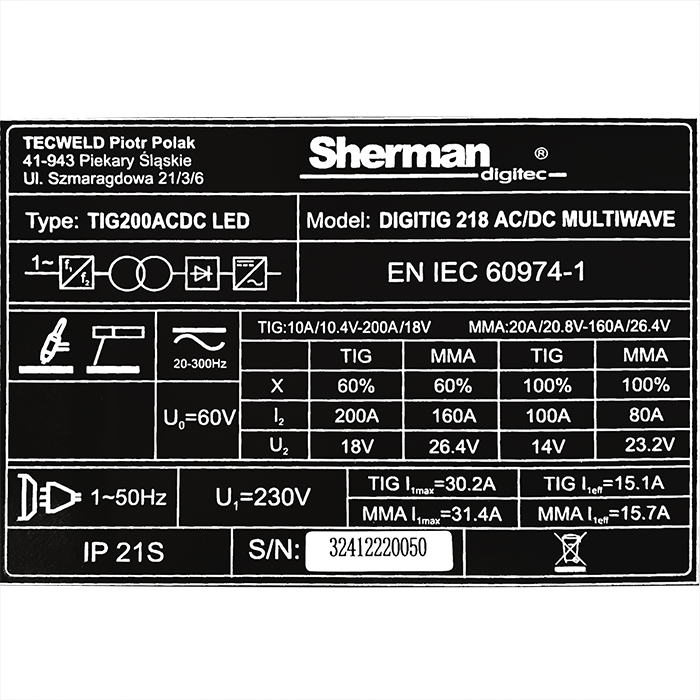 Spawarka inwertorowa DIGITIG 218 AC/DC MULTIWAVE