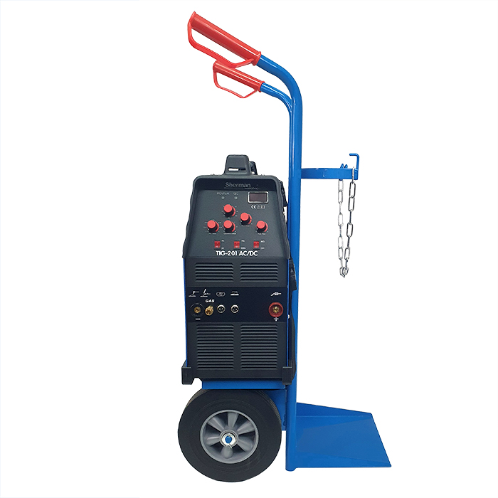 Zestaw spawarka inwertorowa TIG 201 AC/DC z wózkiem jednobutlowym z półką i butlą Ar 8l 200 bar