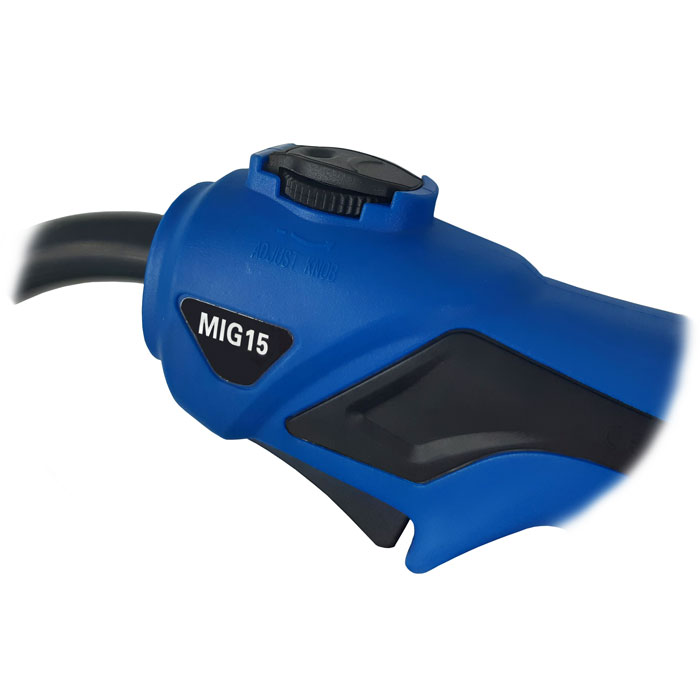Spawarka wyposażona jest w unikatowy uchwyt MIG z pokrętłem w rękojeści umożliwiającym zdalną regulację napięcia/prądu spawania podczas pracy w trybie synergicznym.