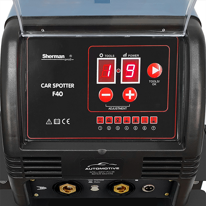 Zgrzewarka oporowa F40 przeznaczona jest do zgrzewania blach, przygrzewania elementów o różnych kształtach i rozgrzewania blach. Znajduje szerokie zastosowanie w warsztatach blacharskich do wyciągania elementów nadwozia.