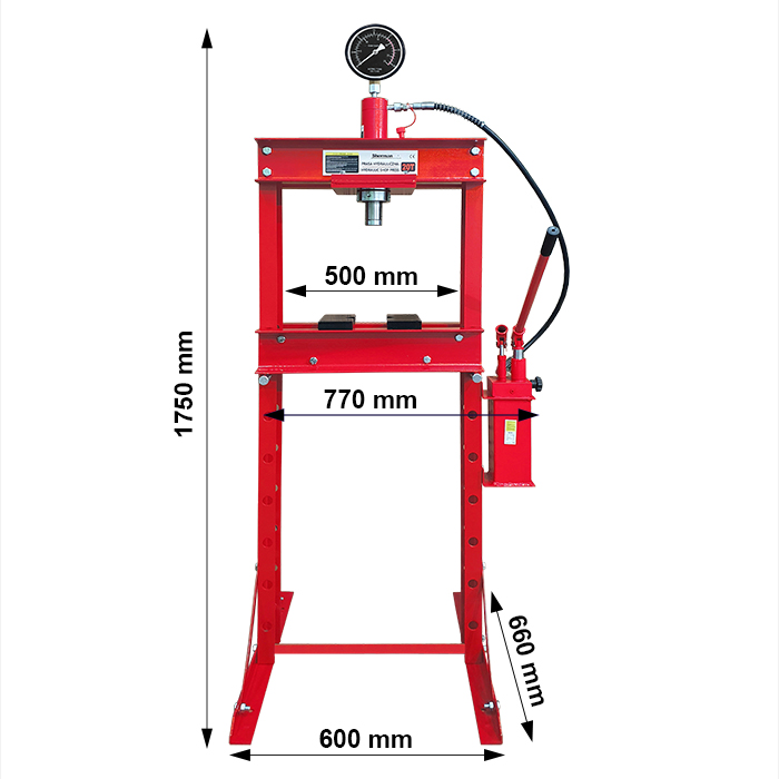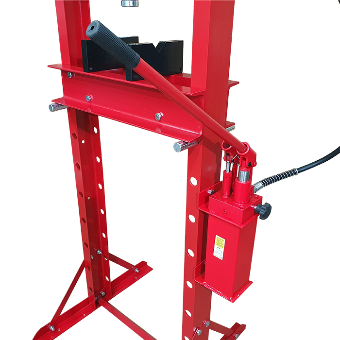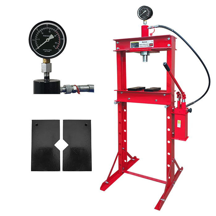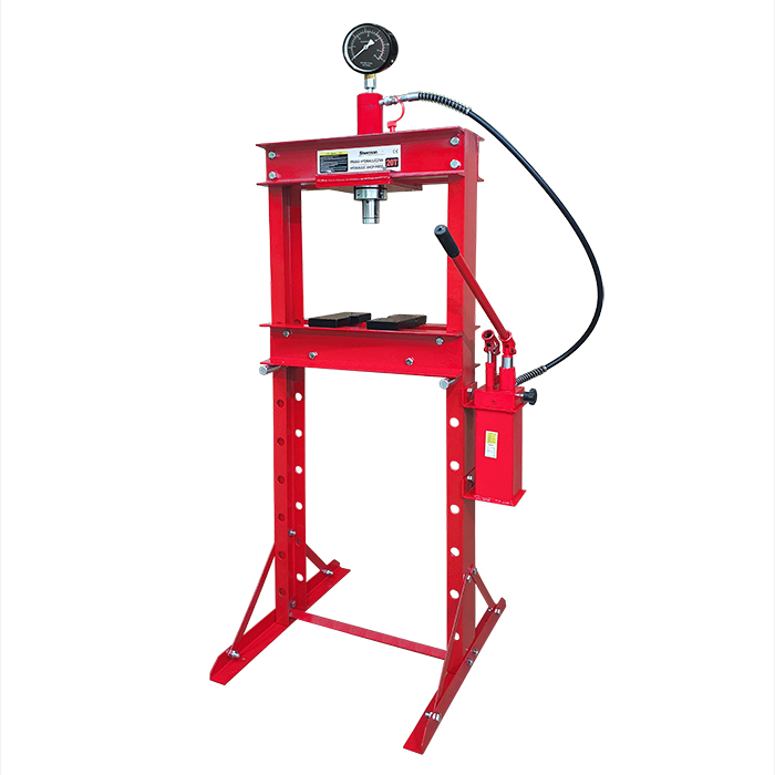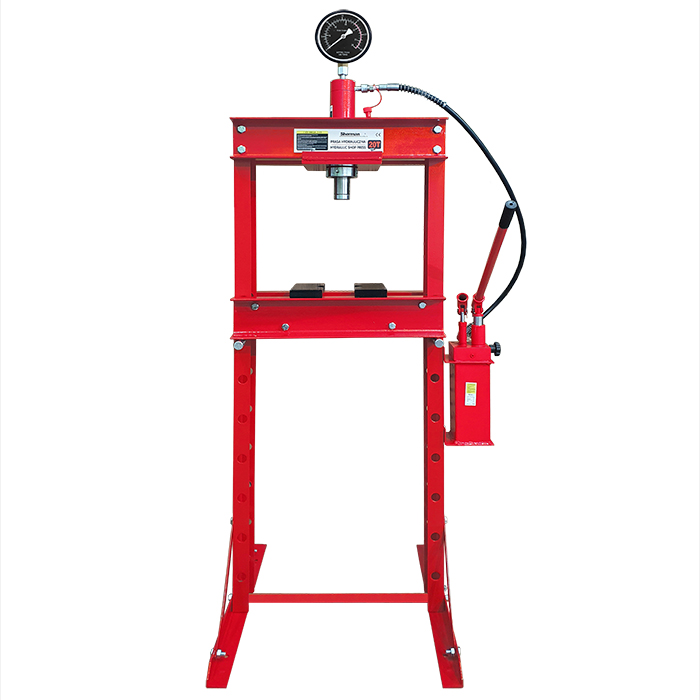 Hydrauliczna prasa warsztatowa PH3 z manometrem o maksymalnym nacisku 20 ton. Niezwykle przydatna podczas: wciskania, wyciskania, ściskania i obróbki różnych elementów. Znajdzie swoje zastosowanie np. podczas montażu wałów korbowych i łańcuchów oraz łączenia na wcisk osi, przekładni jak również tulei.