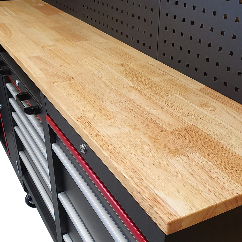 - Blat warsztatowy wykonany z trwałego drewna. Dzięki wysokiej odporności na uderzenia i ścieranie blat sprawdza się doskonale zarówno w profesjonalnych warsztatach, jak i w garażu majsterkowicza. To niezawodne i trwałe rozwiązanie do wymagających zadań.