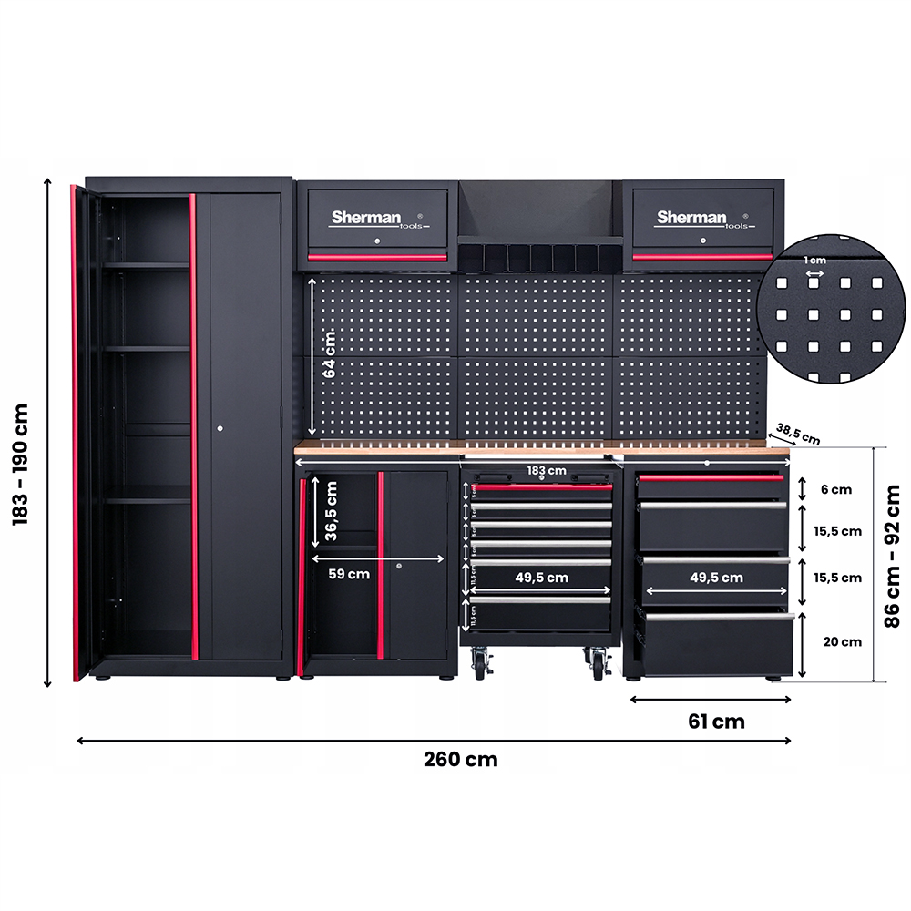 DANE TECHNICZNE – Zestaw mebli warsztatowych SHERMAN