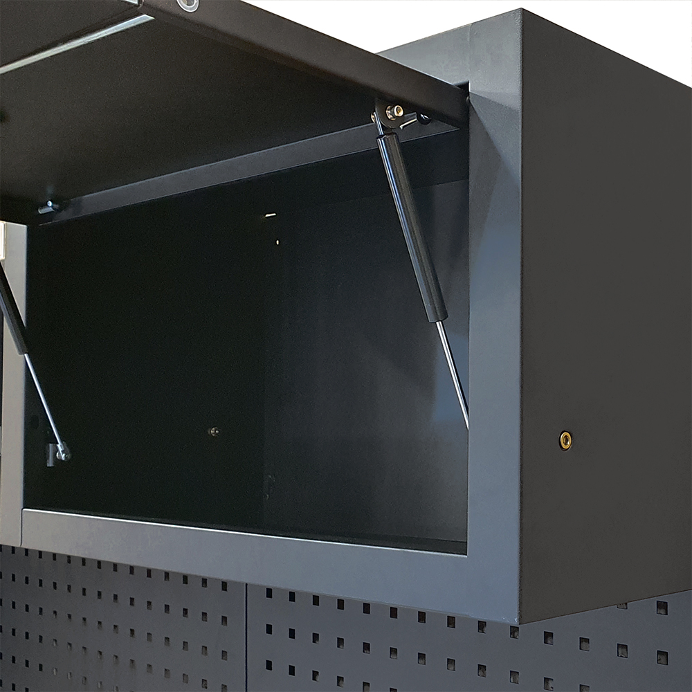 - Panel perforowany: stalowy, z otworami 10×10 mm – idealny do zawieszania narzędzi