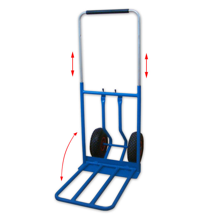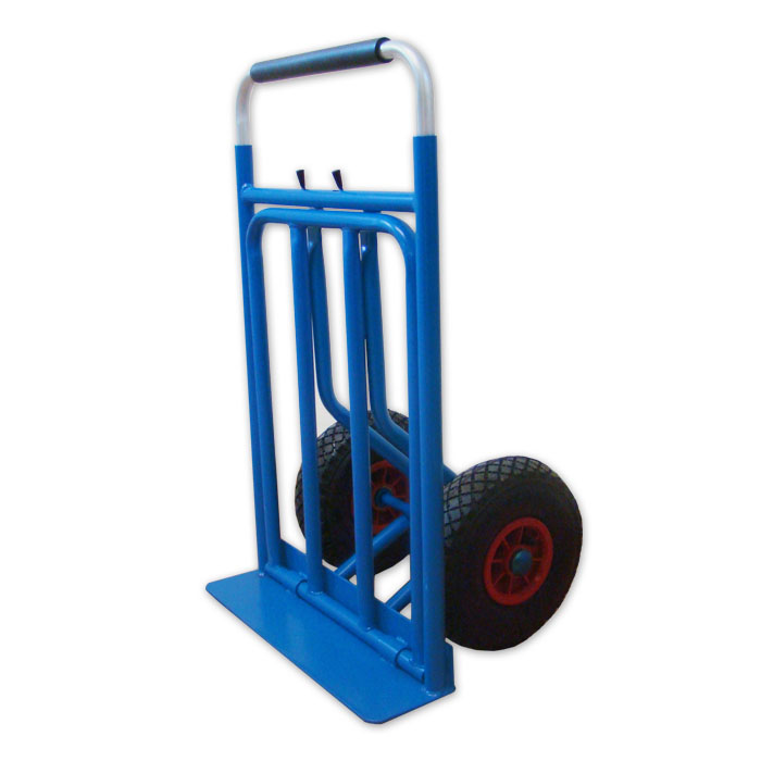 Składany wózek do transportu worków, paczek i skrzynek. Lekka konstrukcja stalowo-aluminiowa. Możliwość złożenia do kompaktowych rozmiarów ułatwiających jego transport