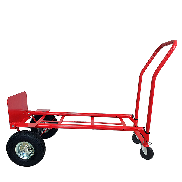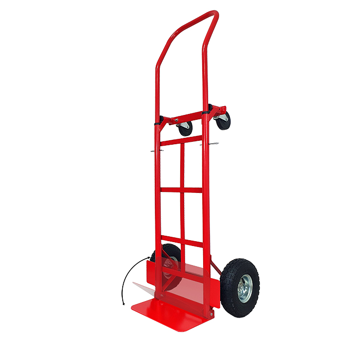 MŁYNARKA, czyli wózek 2w1: możesz go wykorzystać jako wózek na czterech kółkach, lub jako wózek magazynowy na dwóch kółkach – w zależności od potrzeb i rodzaju załadunku.